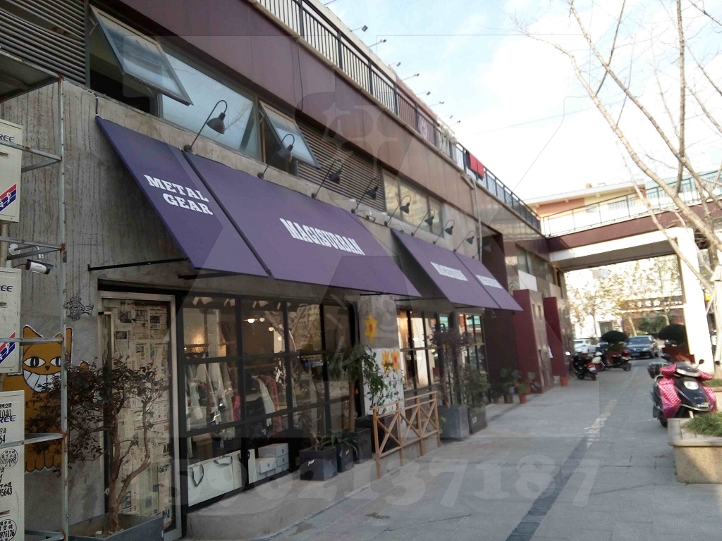 • 斜面造型装饰挡雨篷,具有广告牌雨篷一体化性质,可采用感光柔性面料制作
